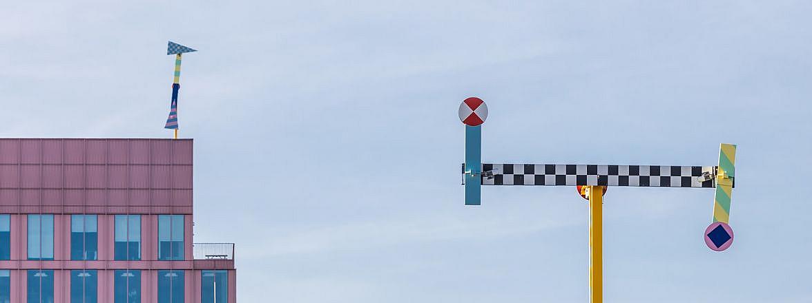 The White Wall Company designed, fabricated, and installed artist Amalia Pica ‘Semaphore’ sculptures, currently in situ in Granary Square, Kings Cross Estates.The three artworks form a sight line, invoking reference to the chains of Semaphore Telegraph Towers which were a Napoleonic era forerunner of 21st century data networks.
