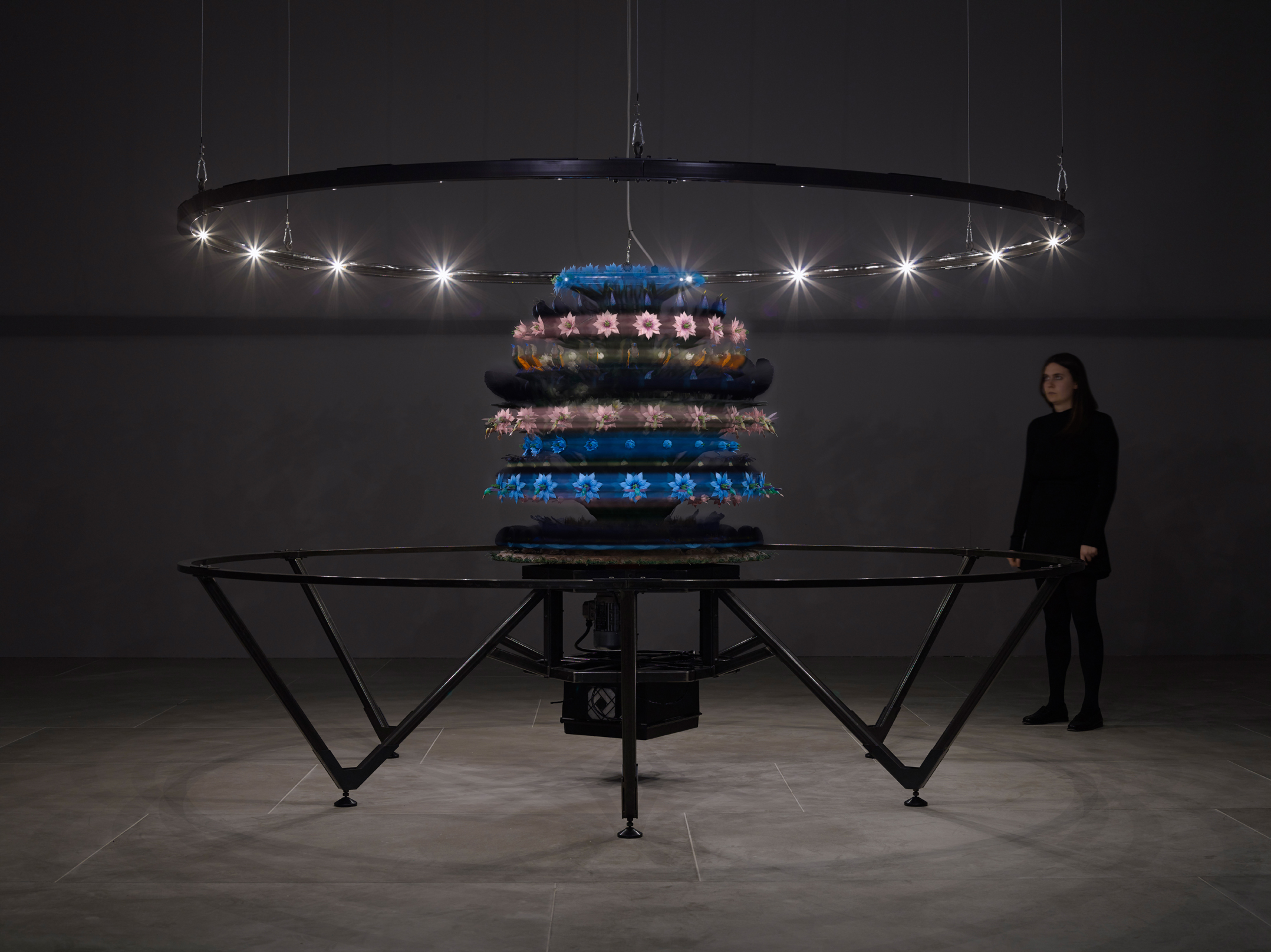 The artwork is designed as a component assembly to allow the exhibition to tour and be feasible to transport and install in highly sensitive Grade 1 listed areas. Safety protocols and barriers are included in the design to ensure the public can stand adjacent to the work whilst it is in operation. The White Wall Company carried out 3D printing and modelling of components alongside electrical engineering and mechanical assembly.