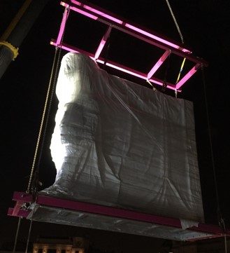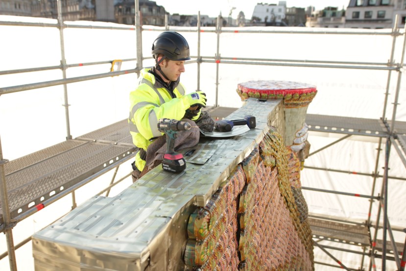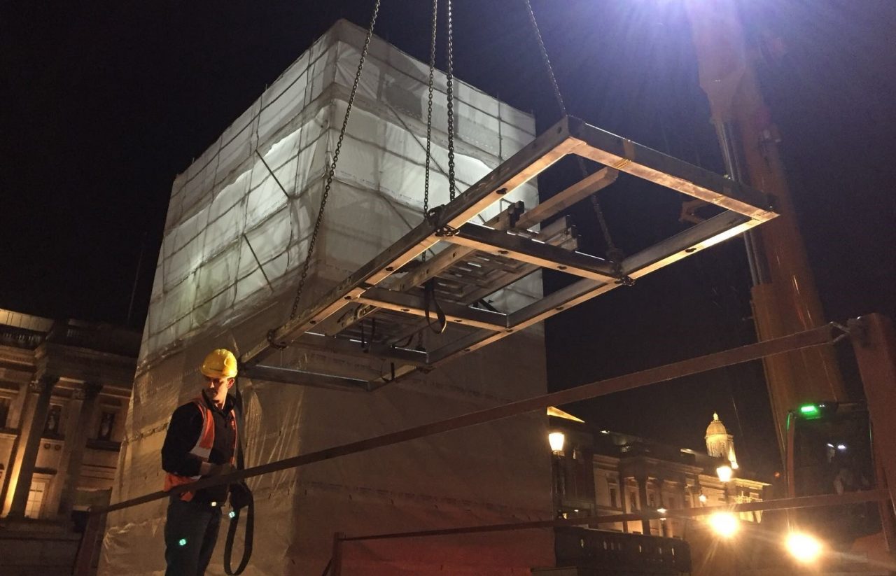 The artwork was transported to Trafalgar Square in a bespoke steel lifting framework and installed with a 60 tonne crane.